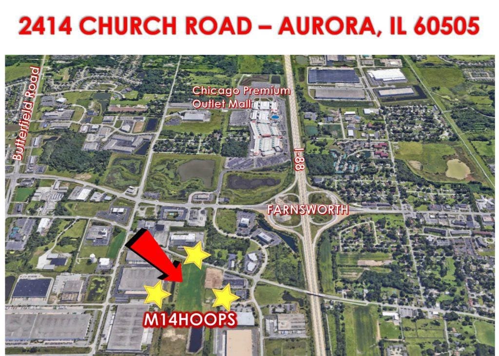Located in Aurora, IL, The M14Hoops Headquarters is a state-of-the-art 53,000 square foot basketball development facility with 6 indoor basketball courts (high school regulated), a 4,300 square foot weight room, Film with a SMART board and 2 large dry erase boards, a Concession Area, and 300 Parking Spaces. M14Hoops is conveniently open year-round, providing basketball, strength and agility development to players at every skill level. The facility is also temperature-controlled, allowing us to host events and tournaments all year long regardless of weather conditions.